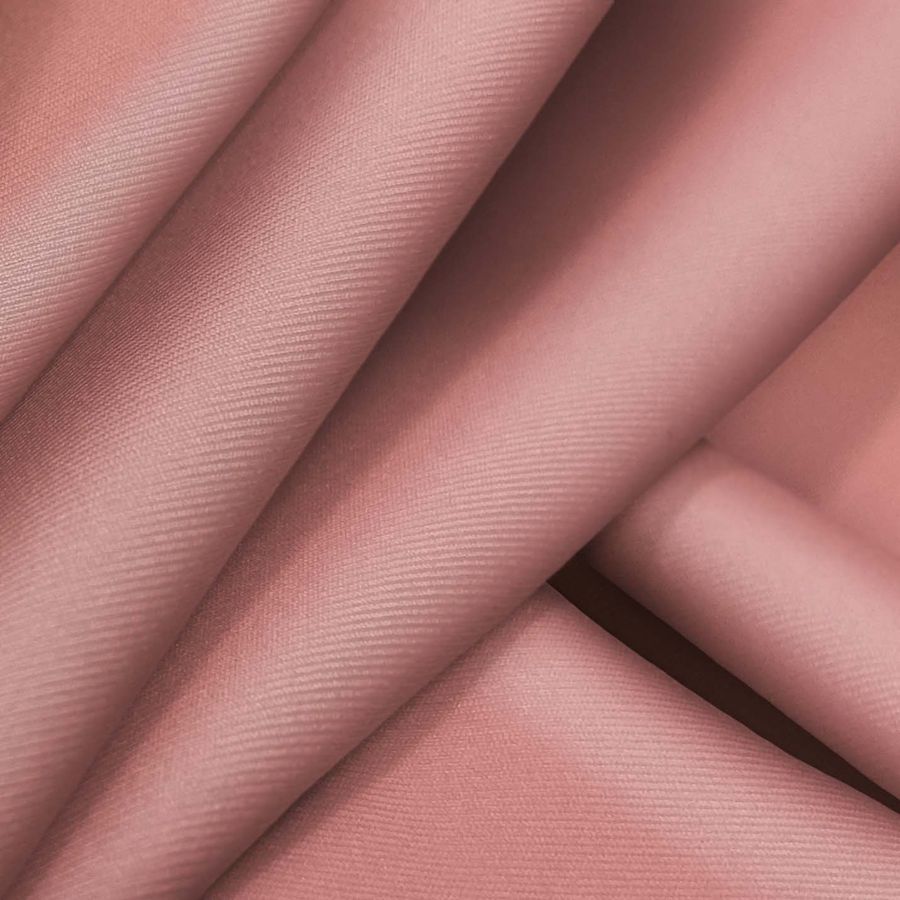 La tela base es Lycra Reciclada - Recycled de 190 gr/m2, compuesta por un 85% de poliéster y un 15% de elastano, con un ancho de 150 cm. El color liso impreso es un rosa vibrante denominado New York, que se obtiene mediante la impresión digital textil por una sola cara, con un CMYK de 13 57 42 2. El color secundario es un cálido naranja que combina perfectamente con tonos tierra y verdes, así como con los tonos neutros de la tela base.