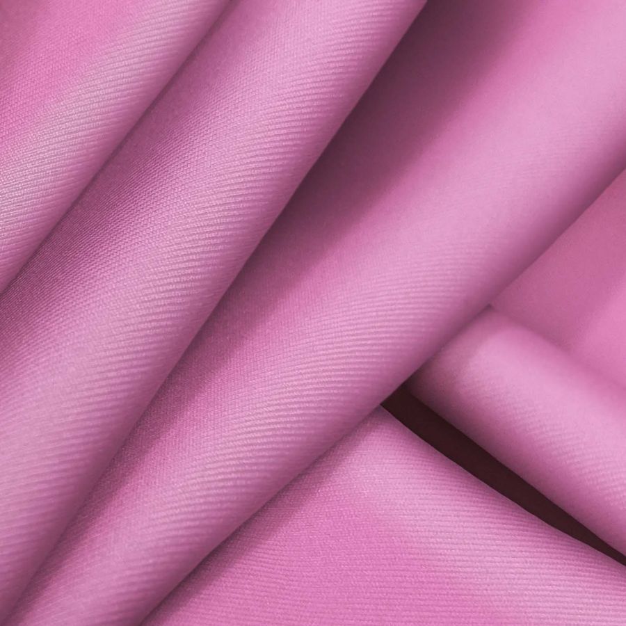 La tela base es la Lycra Reciclada - Recycled de 190 gr/m2, compuesta por un 85% de poliéster y un 15% de elastano, con un gramaje de 190 gr/m2 y un ancho de 150 cm. El color inicial se presenta en rosa persa, siendo su contenido de tinta de 3 en Cyan, 62 en Magenta, 0 en Yellow y 0 en Black, lo que resulta en una combinación de 3 62 0 0 en CMYK. Este color secundario representa una tonalidad rosada con un matiz de púrpura magnética. Combina especialmente con tonos verdosos, grises y negros.