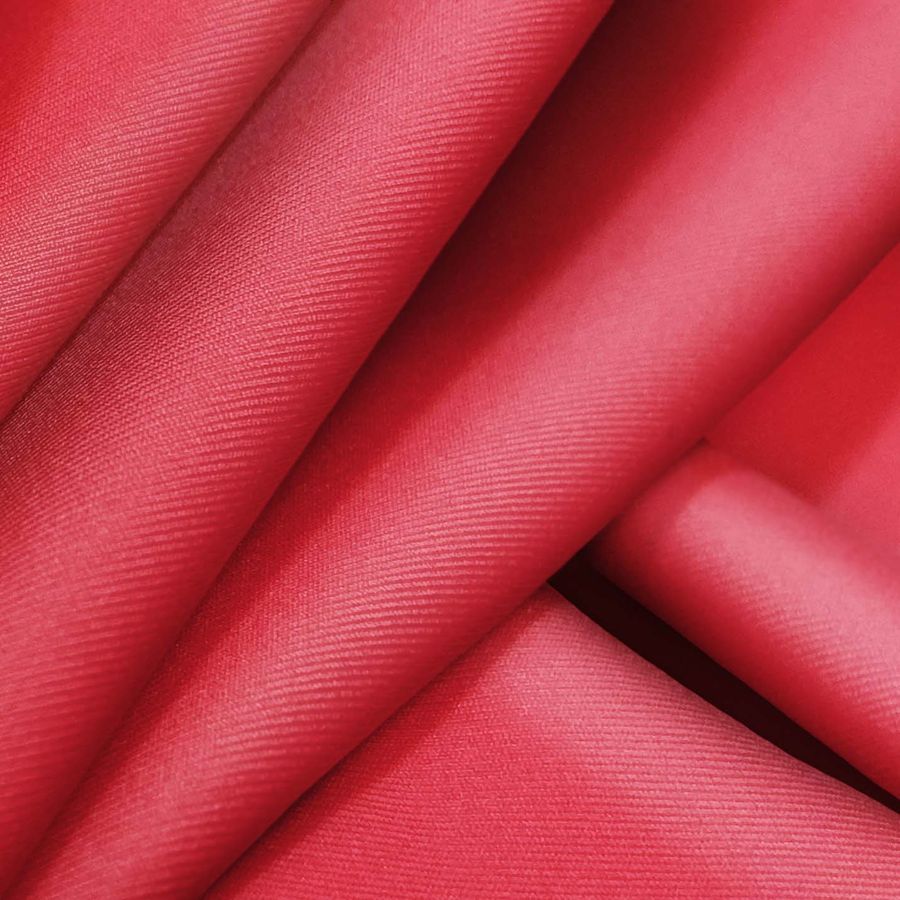 La tela base es la Lycra Reciclada - Recycled de 190 gr/m2, compuesta por un 85% de poliéster y un 15% de elastano, que le confieren una elasticidad y suavidad al tacto únicas. El color liso impreso en esta tela es un rosa rojo intenso, que se obtiene a partir de una combinación de tintas magenta y amarillo. Este color vibrante combina perfectamente con tonos neutros como el blanco y el negro, así como con colores más intensos como el naranja y el púrpura.