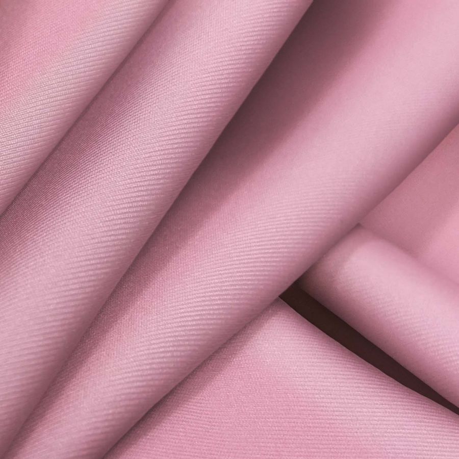 La tela base es la Lycra Reciclada - Recycled de 190 gr/m2, de tipo Lycra y compuesta por 85% POLIÉSTER y 15% ELASTANO. El color liso impreso es un Rosa Confite, con un CMYK de 0 51 9 0, que otorga a la tela un aspecto suave y delicado. Este color se combina de forma ideal con tonalidades claras como el blanco, rosas pastel y con un estampado floral.