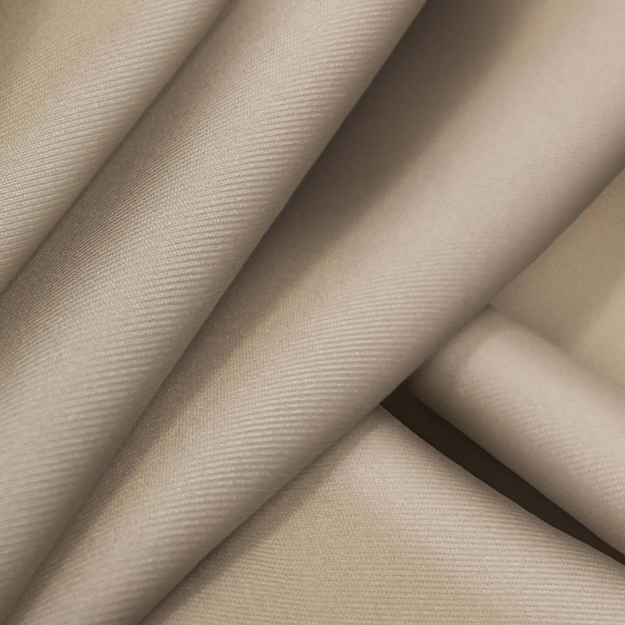 El color secundario de la tela es un marrón claro con un toque de rosado, que combina particularmente bien con tonos crema y nude. El color subraya la elegancia y sofisticación de la tela de Lycra Reciclada, haciéndola perfecta para aplicaciones en el mundo de la moda y el baño.