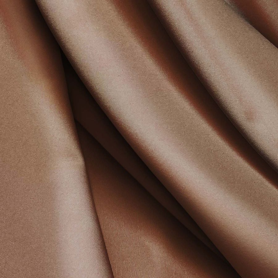 La tela base es la Lycra Reciclada - Recycled de 190 gr/m2, con un ancho de 150 cm y compuesta por un 85% de poliéster y un 15% de elastano. El color liso impreso es de un cálido tono Marrón Canela, compuesto por la siguiente combinación CMYK: 35 Cyan, 55 Magenta, 61 Yellow y 39 Black. Este color combina especialmente con tonos crudos, beiges, ocres y naranjas, y su simbolismo evoca la tierra y la naturaleza. Se trata de una tela impresa a una sola cara por impresión digital textil, lo que ofrece gran calidad y definición en la impresión.