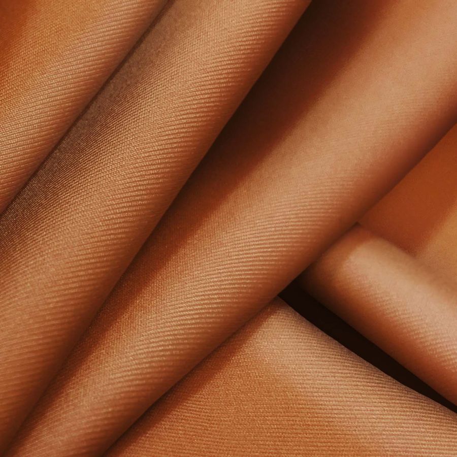 La Lycra Reciclada - Recycled de 190 gr/m2 es una tela elástica y suave de composición 85% poliéster y 15% elastano. Su color liso impreso consta de marrón y anaranjado con un CMYK de 27 68 89 21. Este color secundario representa una mezcla cálida entre el marrón terroso y el anaranjado vibrante, lo que transmite calidez y energía. Además, combina bien con tonos tierra, verde oscuro y azules.