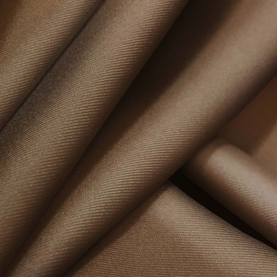 La tela base es la Lycra Reciclada - Recycled de 190 gr/m2, compuesta por un 85% de poliéster y un 15% de elastano. Su ancho es de 150 cm y esta tela cuenta con la certificación GRS, siendo sostenible y respetuosa con el medio ambiente. En cuanto a su color, encontramos un marrón nogal con un CMYK de 43 58 73 56. Este color tiene una gran profundidad y suavidad, lo que aporta elegancia y sofisticación al tejido. El marrón nogal combina perfectamente con otros tonos tierra como el beige o el marrón chocolate, así como también puede ser acompañado por tonos pastel suaves.