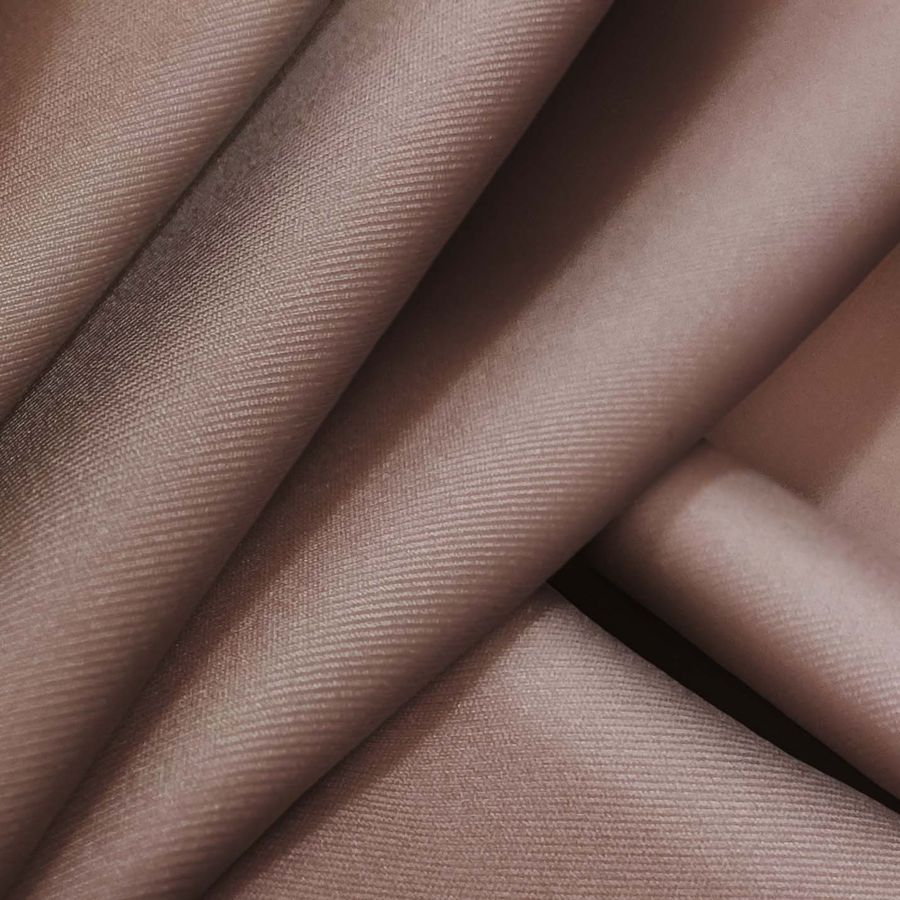 La tela base es la Lycra Reciclada - Recycled de 190 gr/m2, compuesta por 85% de poliéster y 15% de elastano. El color liso impreso es Marrón Nuez Moscada, cuyo contenido de CMYK es 38 51 49 37. Este color simboliza la calidez de la tierra y la naturaleza, y técnicamente se caracteriza por ser un tono marrón oscuro con toques de rojo y amarillo. Combina muy bien con colores neutros y tierras como el beige, ocre y verde aceituna.