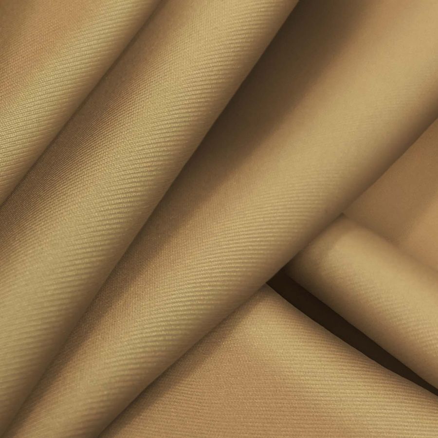 La tela base es Lycra Reciclada - Recycled con un gramaje de 190 gr/m2 y composición de 85% poliéster y 15% elastano. Su color liso impreso es Marron/Oro Viejo, con un CMYK de 27 43 67 17. Este color secundario se describe como un tono cálido y lujoso, que evoca imágenes de tierras de cultivo y joyas antiguas. Combina perfectamente con una amplia gama de colores, incluyendo marrones oscuros, oro, turquesa y verde oliva.