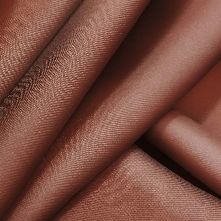 La tela base es la Lycra Reciclada - Recycled de 190 gr/m2. El color liso impreso es Marrón Secuoya, el cual se obtiene mediante la combinación de tinta cian con un 33%, tinta magenta con un 68%, tinta amarilla con un 68% y tinta negra con un 40%. Este tono terroso y profundo evoca la sensación de estar en contacto con la naturaleza y combina especialmente bien con tonos neutros como gris y beige, así como con tonalidades intensas como el verde oscuro y el azul marino.