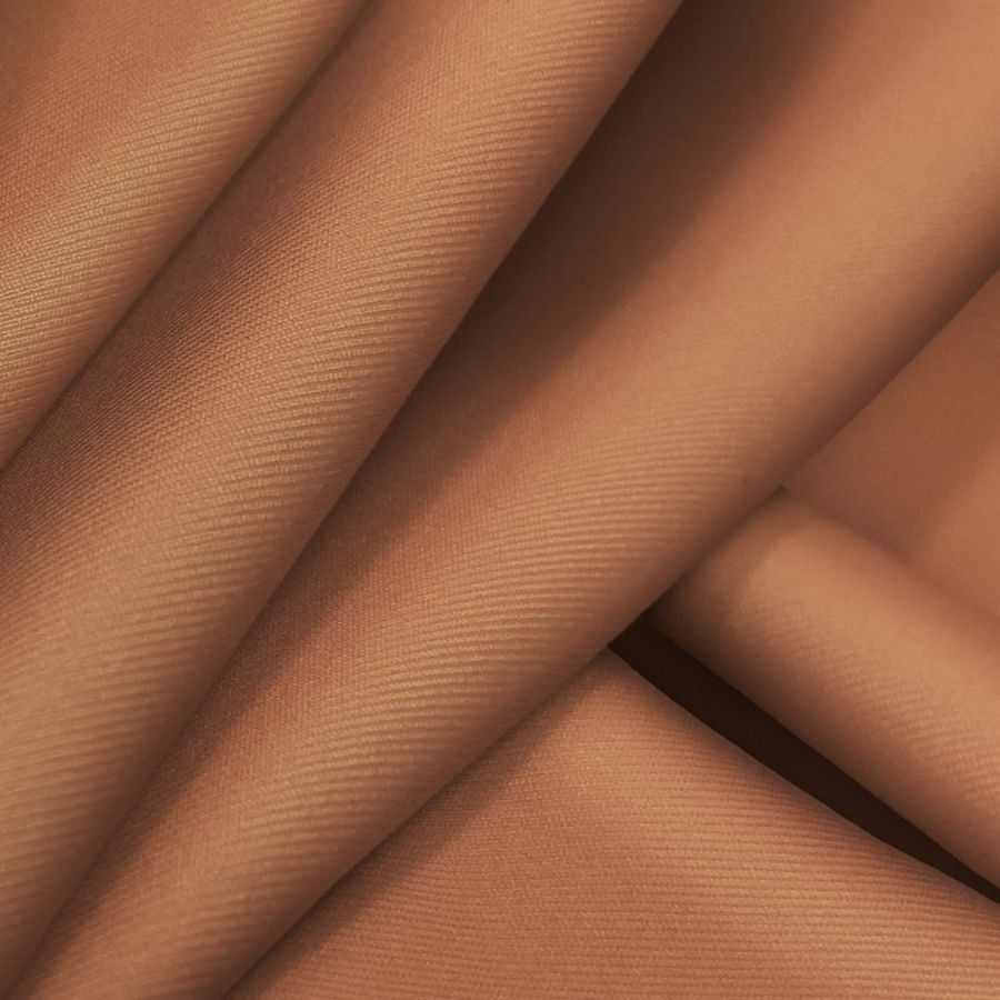La tela base de este tejido es Lycra Reciclada, una Lycra suave de 190 gr/m2 compuesta por un 85% de poliéster y un 15% de elastano. Su color liso impreso es Marrón Terracota Oscuro con un contenido de CMYK de 25 61 69 17. Este color es una mezcla cálida entre un marrón oscuro y un tono terracota. Combina perfectamente con colores neutros como el blanco y el gris, así como con tonos tierra como el verde oliva o el beige.