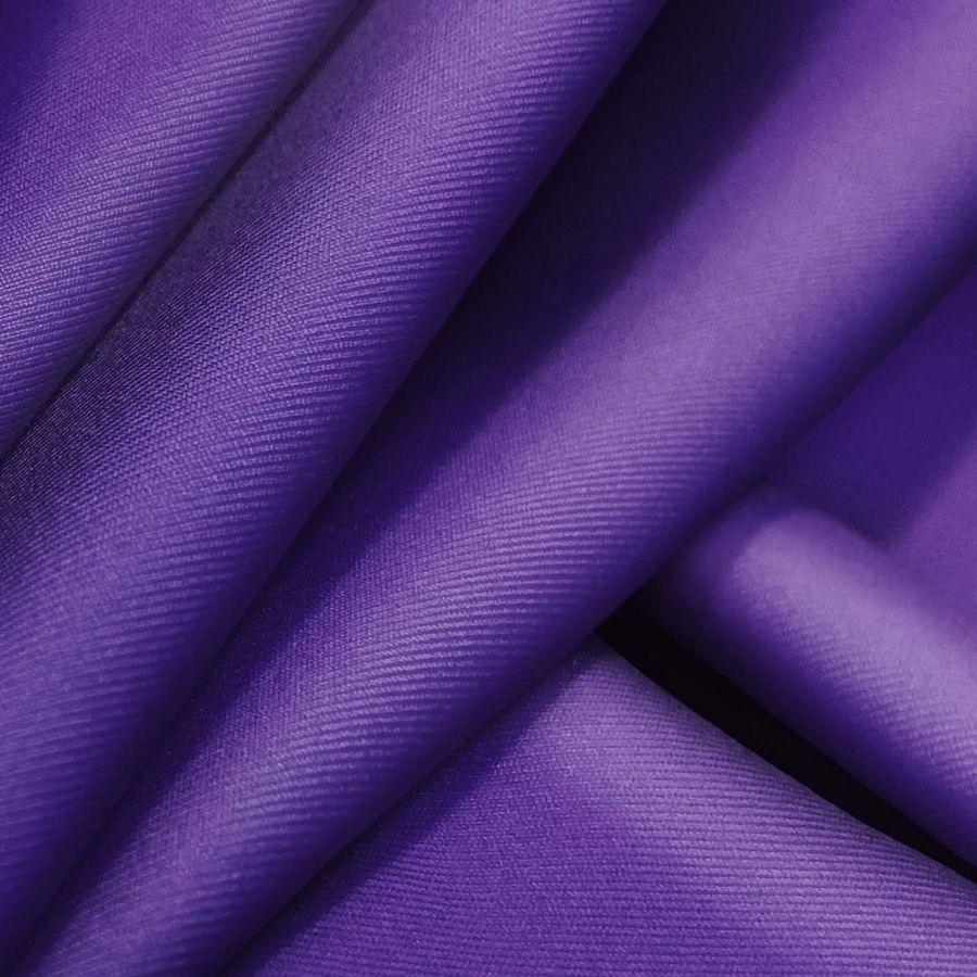 La tela base es Lycra Reciclada - Recycled de 190 gr/m2, compuesta por 85% poliéster y 15% elastano, con un gramaje de 190 gr/m2 y un ancho de 150 cm. El color liso impreso es un tono Morado Violeta Azul, cuyo CMYK es 88 99 3 1. Este color se caracteriza por ser intenso y vibrante, aportando un aire de sofisticación y elegancia. Combina perfectamente con tonalidades claras como el blanco, así como con tonos más intensos como el rojo y el verde.