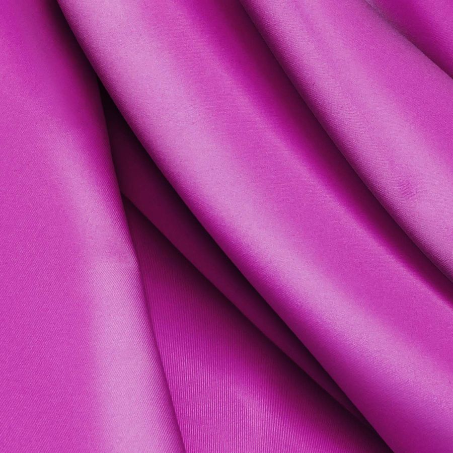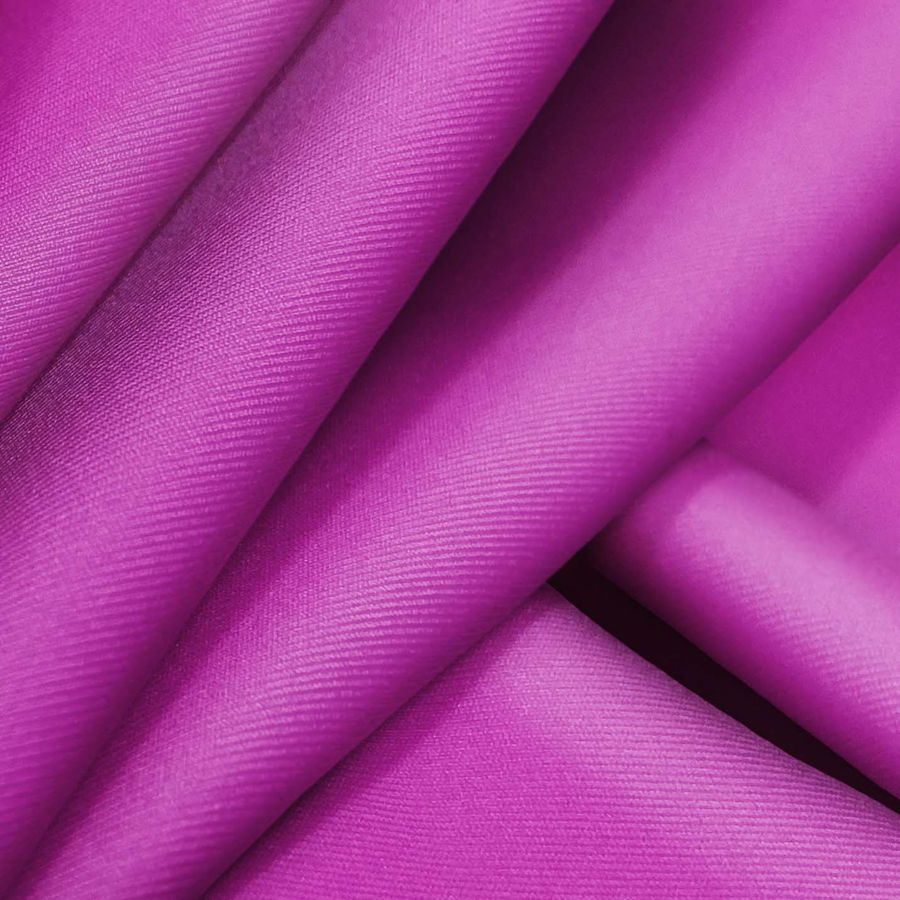 La tela base es la Lycra Reciclada - Recycled, con una composición de 85% poliéster y 15% elastano, un gramaje de 190 gr/m2 y un ancho de 150 cm. Su color liso impreso es un tono morado bizantino, con una tinta cyan del 39 y una tinta magenta del 85. La tela es suave, elástica y resistente al cloro, con un factor de protección UV muy alto de 50+. Además, está certificada por GRS y es sostenible, ya que está hecha con materiales reciclados. El color secundario morado bizantino es un tono cálido y profundo, que combina bien con colores como el amarillo, el dorado y el marfil.
