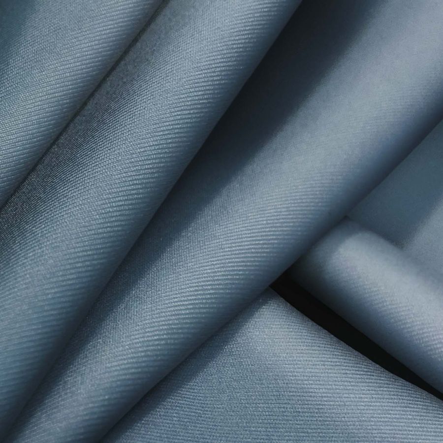La tela base es Lycra Reciclada - Recycled con un gramaje de 190 gr/m2 y composición de 85% poliéster y 15% elastano. La impresión digital textil del color liso es Morado y Gris de Payne con un CMYK de 69 47 37 23. El color secundario Morado representa la tranquilidad y creatividad, mientras que el Gris de Payne evoca sofisticación y seriedad, combinando perfectamente con tonos claros como el blanco o pastel, así como con colores vivos y más fuertes como el rojo o el amarillo.