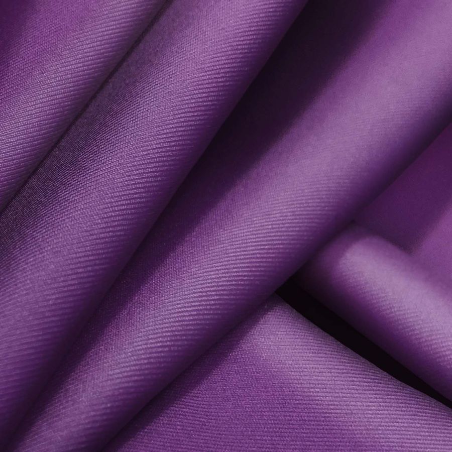 La tela base es Lycra Reciclada - Recycled de 190 gr/m2, compuesta por 85% poliéster y 15% elastano, con un gramaje de 190 gr/m2 y un ancho de 150 cm. El color liso impreso es Morado Imperial, de CMYK 72 93 24 13. Este color se caracteriza por ser profundo y enérgico, con un punto de sofisticación. Combina bien con tonos más claros como el rosa, el beige o el blanco, y con tonos más oscuros como el negro o el gris. La tela está impresa con el color liso a una sola cara por impresión digital textil.