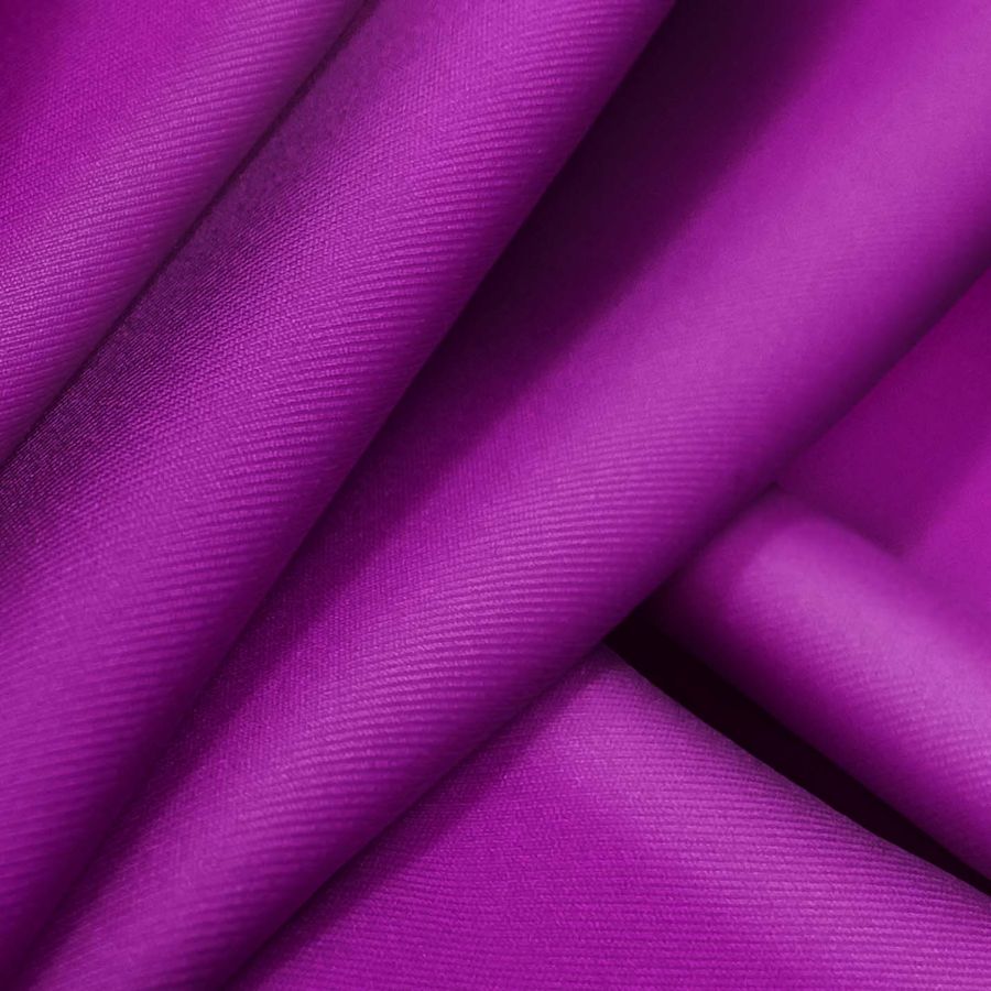 La tela base de este tejido es una Lycra Reciclada – Recycled de 190 gr/m2, compuesta por un 85% de poliéster y un 15% de elastano. Su ancho de tela es de 150 cm y el gramaje de 190 gr/m2. El color liso impreso en esta tela es un Morado Mardi Gras, el cual se obtiene mediante una combinación de tinta cian en un 60% y tinta magenta en un 100%, con un total de 60% de cian y 100% de magenta en el CMYK.