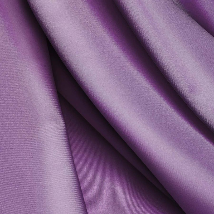 La tela base es Lycra Reciclada de 190 gr/m2, compuesta por un 85% de poliéster y un 15% de elastano, con una textura suave y elástica. El color liso impreso es Morado Pomp and Power, con un CMYK de 55 67 20 4. Este color se caracteriza por su tonalidad morada intensa y vibrante, que evoca la pasión y el poder. Combina bien con tonos beige, amarillo claro y rosa pálido.