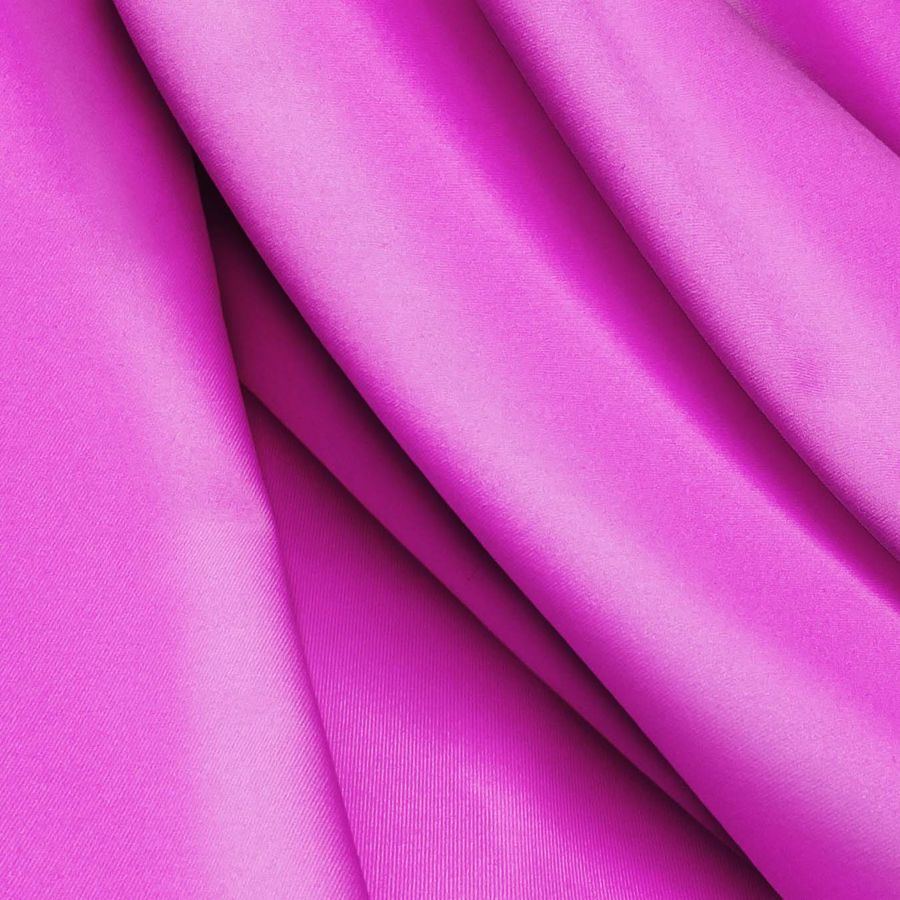 La tela base, Lycra Reciclada - Recycled de 190 gr/m2, es una lycra compuesta por 85% de poliéster y 15% de elastano. Su gramaje de 190 gr/m2 y ancho de 150 cm la hacen ideal para prendas de baño y deportivas. El color del tejido es un liso morado, con el nombre de color "purple dinamismo", y se imprime con una combinación de tintas cian y magenta en un 24% y 72% respectivamente, junto con un 0% de tintas amarilla y negra, lo que resulta en un CMYK de 24 72 0 0. Este color liso se combina perfectamente con tonos neutros, así como con colores azules, verdes y dorados.