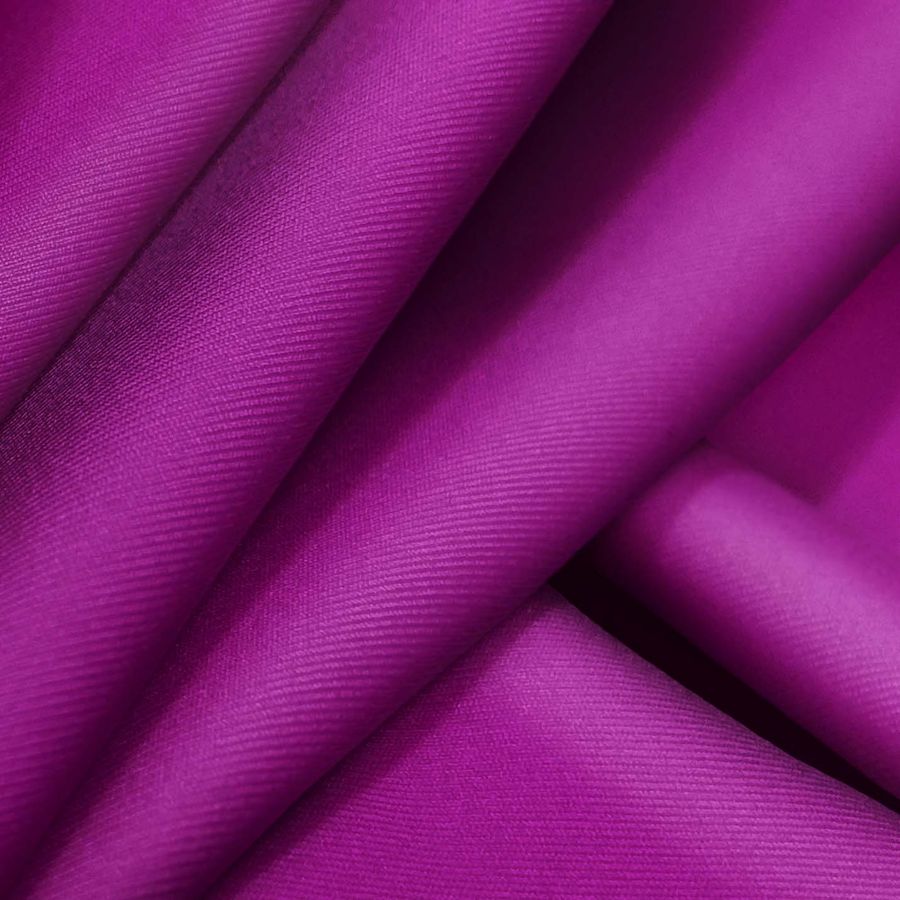 La tela base es Lycra Reciclada de 190 gr/m2 en color liso Morado o también conocido como purple live, cuyo CMYK es 58 100 12 4. Este color transmite una sensación de elegancia y sofisticación. Asimismo, su presencia evoca bienestar y relajación, siendo perfecto para una amplia variedad de prendas. Combina especialmente bien con tonos neutros como el blanco, el beige y el negro, así como con tonalidades más vibrantes como el rosa y el azul.