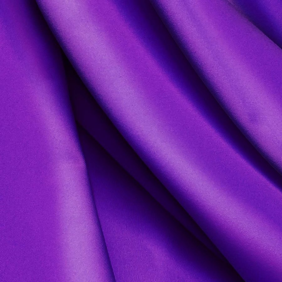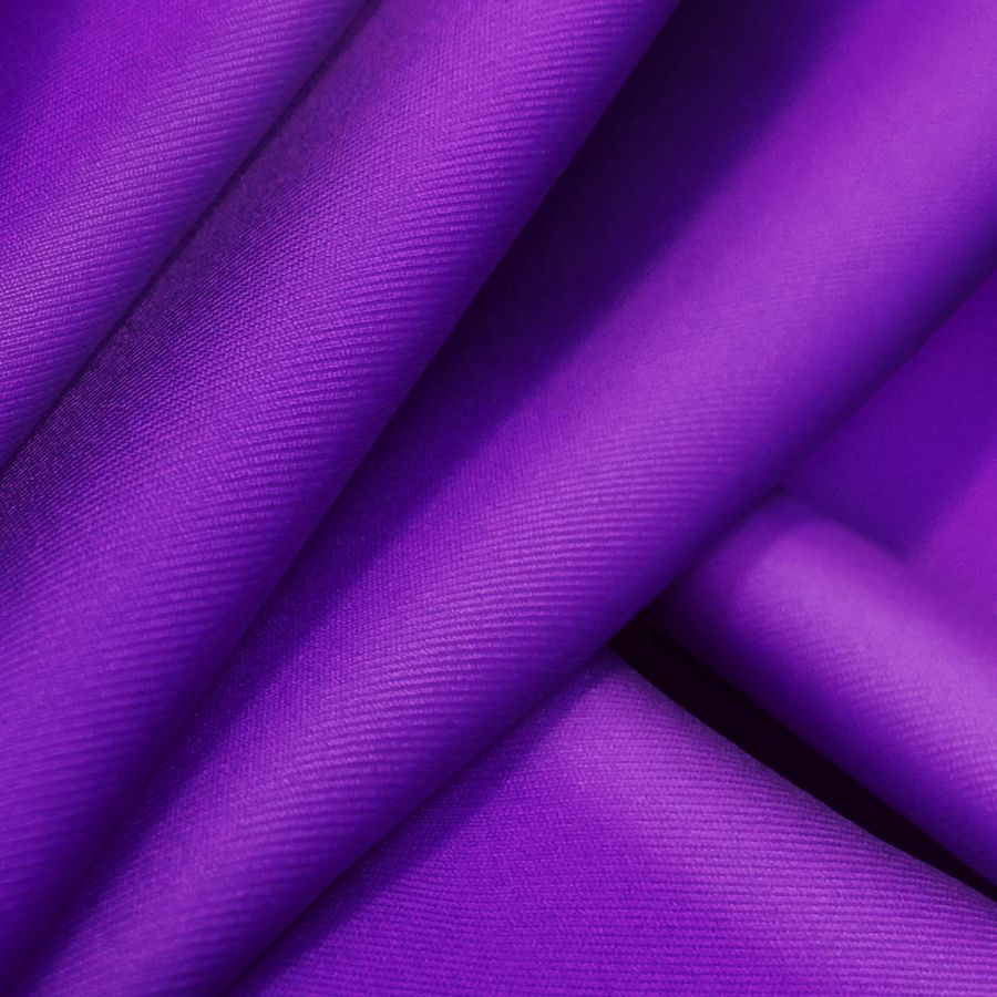 La tela base es Lycra Reciclada - Recycled de 190 gr/m2, compuesta por un 85% de poliéster y un 15% de elastano, con un ancho de 150 cm y un gramaje de 190 gr/m2. El color liso impreso es Morado strong (Purple), con una tinta cyan del 80, magenta del 93, yellow del 0 y black del 0, lo que se traduce en un CMYK de 80 93 0 0. Este tono de morado es vibrante y moderno, y se combina muy bien con colores como el blanco, el negro o el gris.