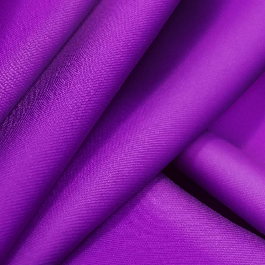 La Lycra Reciclada - Recycled de 190 gr/m2 es una tela elástica, resistente y suave al tacto, compuesta por 85% de poliéster y 15% de elastano. Su color liso impreso en Morado-Violeta Artístico presenta un CMYK de 69 91 0 0. Este color secundario es simbólico y representa la creatividad, la feminidad y la originalidad. Combina especialmente bien con colores de la misma gama como el rosa, el fucsia y el rojo.