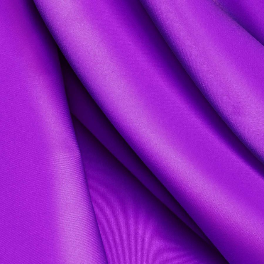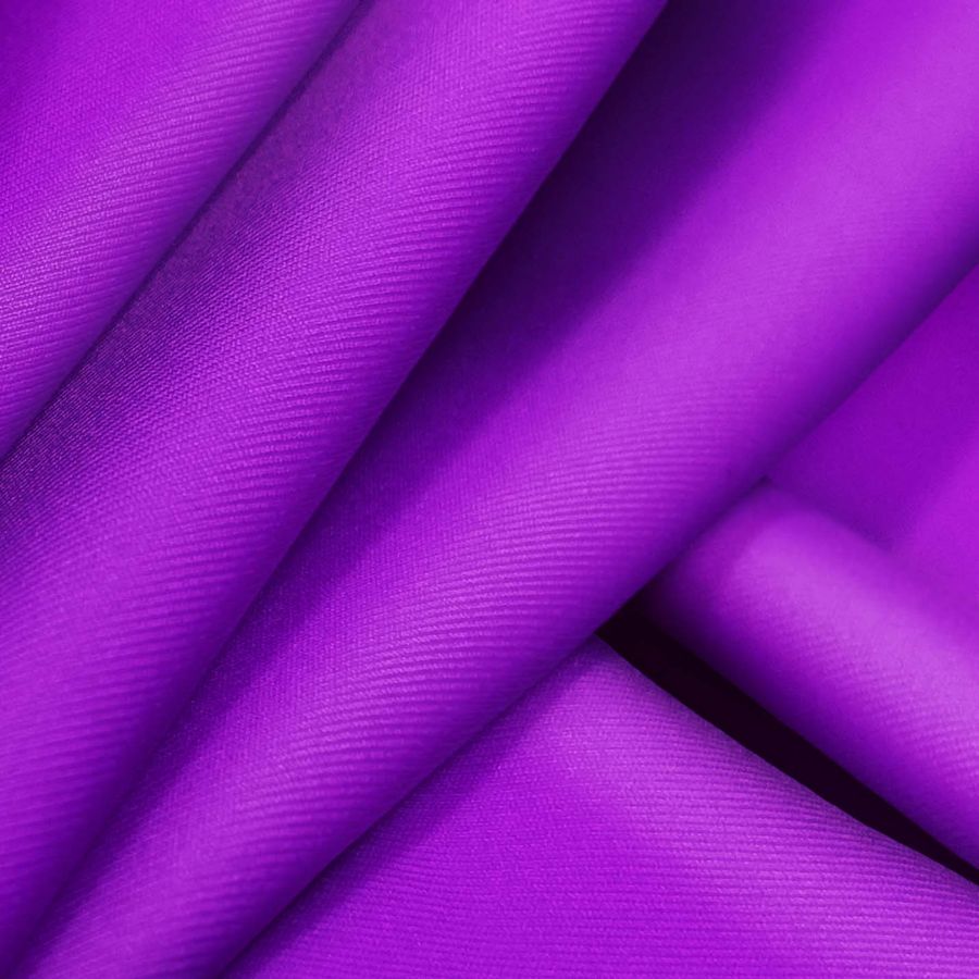 La tela base es Lycra Reciclada - Recycled de 190 gr/m2, compuesta por 85% poliéster y 15% elastano, con un ancho de 150 cm y una textura suave y elástica. El color liso impreso es un morado violeta oscuro, representado por un CMYK de 70 85 0 0. Este color secundario evoca la elegancia, el misterio y la creatividad, combinando perfectamente con otros colores fríos, como el azul oscuro, el verde oliva, el gris cálido y el rosa pálido.
