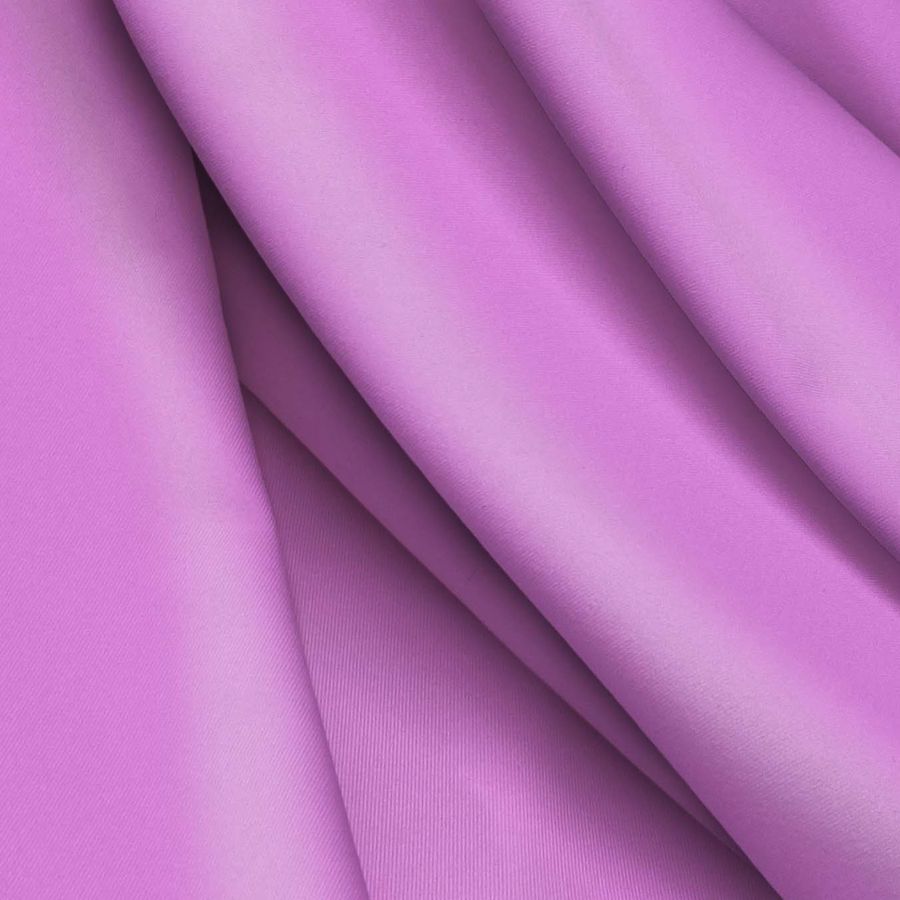 La tela base es Lycra Reciclada - Recycled de 190 gr/m2, una lycra sostenible con composición de 85% poliéster y 15% elastano. El color liso impreso es morado/violeta web con valores CMYK de 25 55 0 0, lo que significa que contiene más magenta que cyan y no tiene presencia de amarillo ni negro en su composición. Este color en particular se combina muy bien con tonos grises, verdes y azules, lo que lo hace una opción versátil y fácilmente combinable en diferentes diseños.