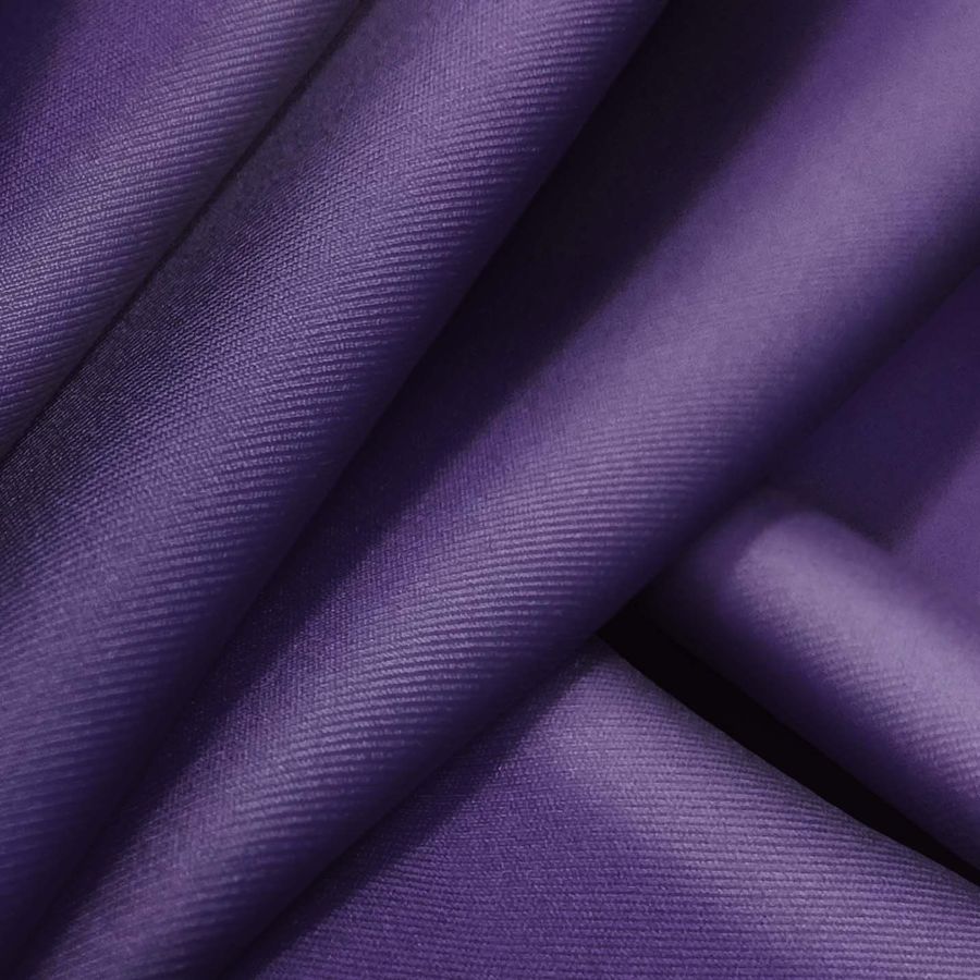 La tela base es Lycra Reciclada - Recycled, de 190 gr/m2, con una composición del 85% de poliéster y un 15% de elastano. El color liso impreso es Morado-Violeta Ultramar con un CMYK de 88-94-29-24 y se combina especialmente bien con tonos grisáceos, azulados y verdosos. El tejido está impreso con el color liso a una sola cara por impresión digital textil. La Lycra Reciclada - Recycled es una tela suave al tacto, elástica y resistente al cloro. Además, cuenta con un factor de protección UV muy alto 50+. Como aplicaciones o usos, esta tela es perfecta para la elaboración de bikinis y bañadores, así como también para accesorios como coleteros y scrunchies.