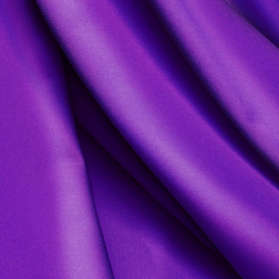 La tela base es Lycra Reciclada - Recycled de 190 gr/m2, compuesta por 85% poliéster y 15% elastano. El color liso impreso es Morado/Violeta Sólido, con un CMYK de 80 95 0 0. Este color se caracteriza por su intensidad y viveza, combinando muy bien con otros tonos de violeta y morado, así como con el rosa y el azul.