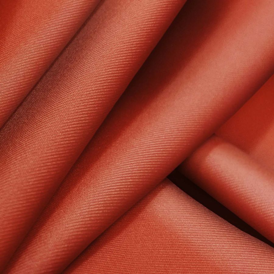 La tela base es Lycra Reciclada - Recycled de 190 gr/m2, con composición 85% poliéster y 15% elastano. Su color liso impreso es Naranja Ladrillo Refractario, el cual tiene un CMYK de 22 86 91 13. Este color tiene una tonalidad vibrante, profunda y cálida. Es un color que se asocia con emociones fuertes y poderosas, como la seguridad en uno mismo, el entusiasmo y la creatividad. Combina especialmente bien con tonos neutros como negro, gris y blanco, así como con tonos tierra y verdes oscuros.