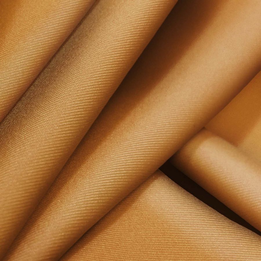 La tela base es lycra reciclada de 190 gr/m2 de composición 85% poliéster y 15% elastano con certificación GRS y sostenible. Su color liso impreso es naranja-cobre con un CMYK de 22 57 85 13. Este color se describe como un tono cálido y vibrante que combina muy bien con tonos neutros como el gris o el beige, o tonos complementarios como el azul o el verde.