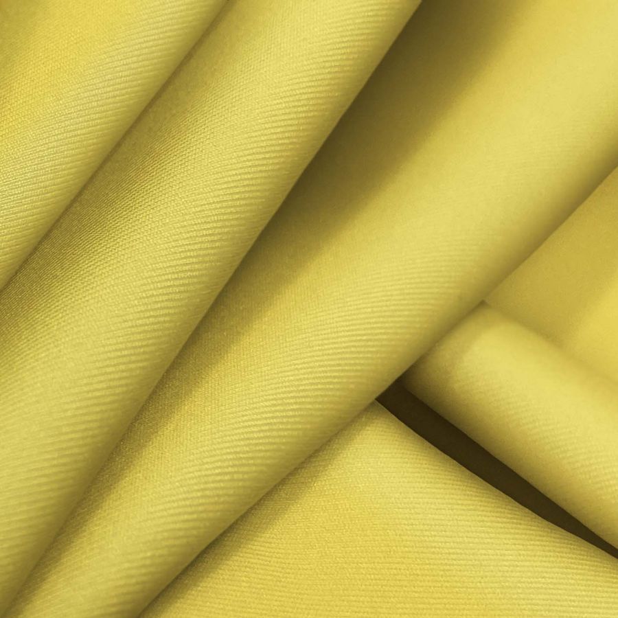 La tela base es la Lycra Reciclada - Recycled de 190 gr/m2, con una composición de 85% de poliéster y 15% de elastano. Su color liso impreso es un vibrante amarillo jengibre, con un CMYK de 2 11 75 0. El color secundario se describe como un amarillo intenso y cálido, que se combina especialmente bien con colores tierra, como marrones y ocres.