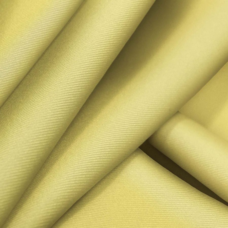 La tela base es una Lycra Reciclada - Recycled de 190 gr/m2, compuesta por un 85% de poliéster y un 15% de elastano, con un ancho de 150 cm. El color liso impreso es un Amarillo Plátano con un contenido de 2 de tinta cyan, 6 de tinta magenta, 64 de tinta yellow y 0 de tinta black, según el CMYK indicado. Este color transmite frescura y energía, asociado a la vitalidad y la creatividad. También se relaciona con la alegría y el optimismo. Este color secundario combina perfectamente con tonos neutros como el blanco y el negro, así como con tonos más cálidos como los naranjas y los rojos.