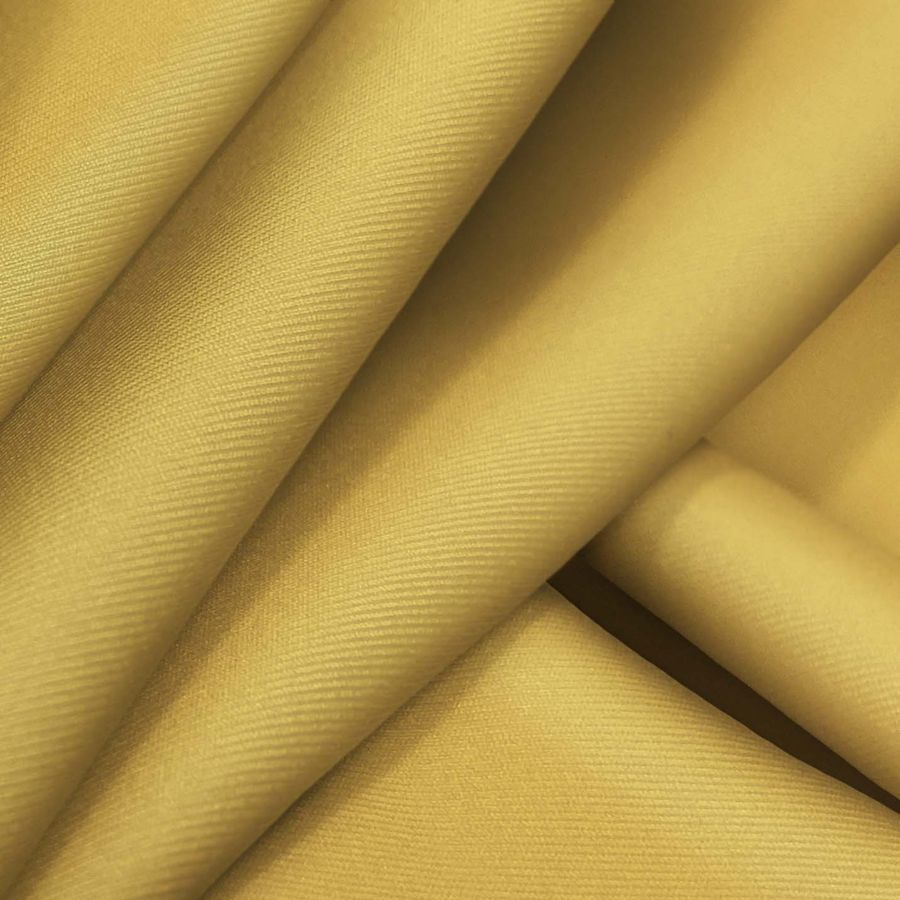 La tela base es Lycra Reciclada - Recycled de 190 gr/m2, de 85% poliéster y 15% elastano, con una textura suave y elástica. El color liso Amarillo Yema impreso, se compone de 12 de tinta Cyan, 32 de tinta Magenta, 75 de tinta Yellow y 2 de tinta Black, con un CMYK de 12 32 75 2. Este color, además de transmitir energía y creatividad, se combina perfectamente con los marrones, verdes y rosas. Es importante destacar que la tela está impresa con este color liso a una sola cara por impresión digital textil, lo que permite una alta definición y calidad de imagen.