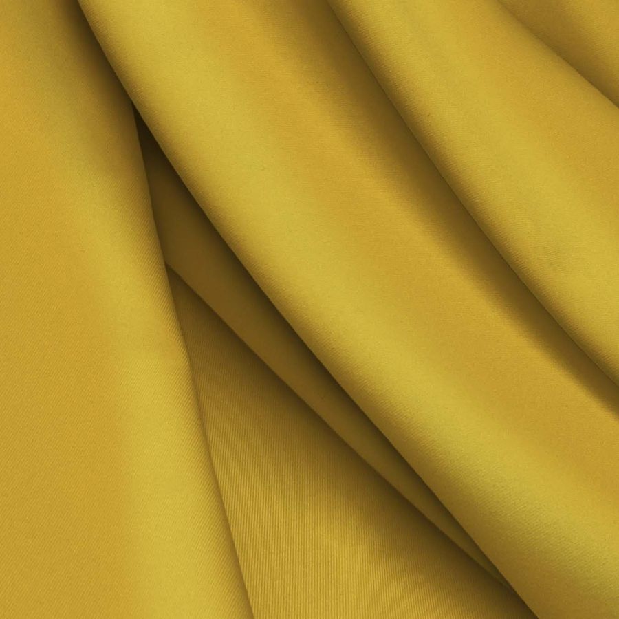 La Lycra Reciclada - Recycled de 190 gr/m2 es un tejido elástico y resistente al cloro con protección UV muy alta. Sus características generales incluyen una textura suave y elástica, que proporciona un tacto agradable al contacto con la piel. El color liso impreso en este tejido es un amarillo curry, cuyo contenido en CMYK es de 16 35 88 4. Este tono es un color secundario cálido y brillante, que puede combinarse con tonalidades más oscuras como el negro para crear efectos de contraste, o con tonos marrones para enfatizar su calidez.