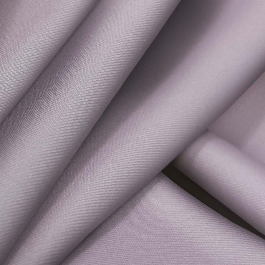 La tela base es Lycra Reciclada - Recycled de 190 gr/m2, compuesta por un 85% de poliéster y un 15% de elastano, con un gramaje de 190 gr/m2 y un ancho de 150 cm. El color liso impreso es Gris Heliotropo, con un CMYK de 36 40 22 5, compuesto por una mezcla de intensos tonos azules y violetas. Este color secundario representa la creatividad y la inspiración, y se combina particularmente bien con otros tonos de violeta, azul y gris.