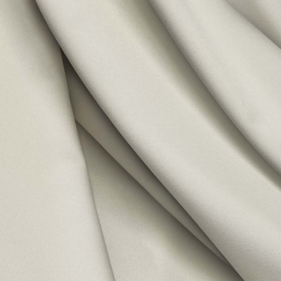 La tela base es Lycra Reciclada - Recycled de 190 gr/m2, compuesta de 85% poliéster y 15% elastano, con un gramaje de 190 gr/m2 y ancho de 150 cm. El color liso impreso es blanco con tonalidades de cáscara de huevo, con un CMYK de 7 7 19 0, lo que aporta un matiz suave y elegante. Este color secundario se combina especialmente bien con tonos cálidos como el coral, el rosa o el amarillo pastel. La tela está impresa por una sola cara mediante impresión digital textil.