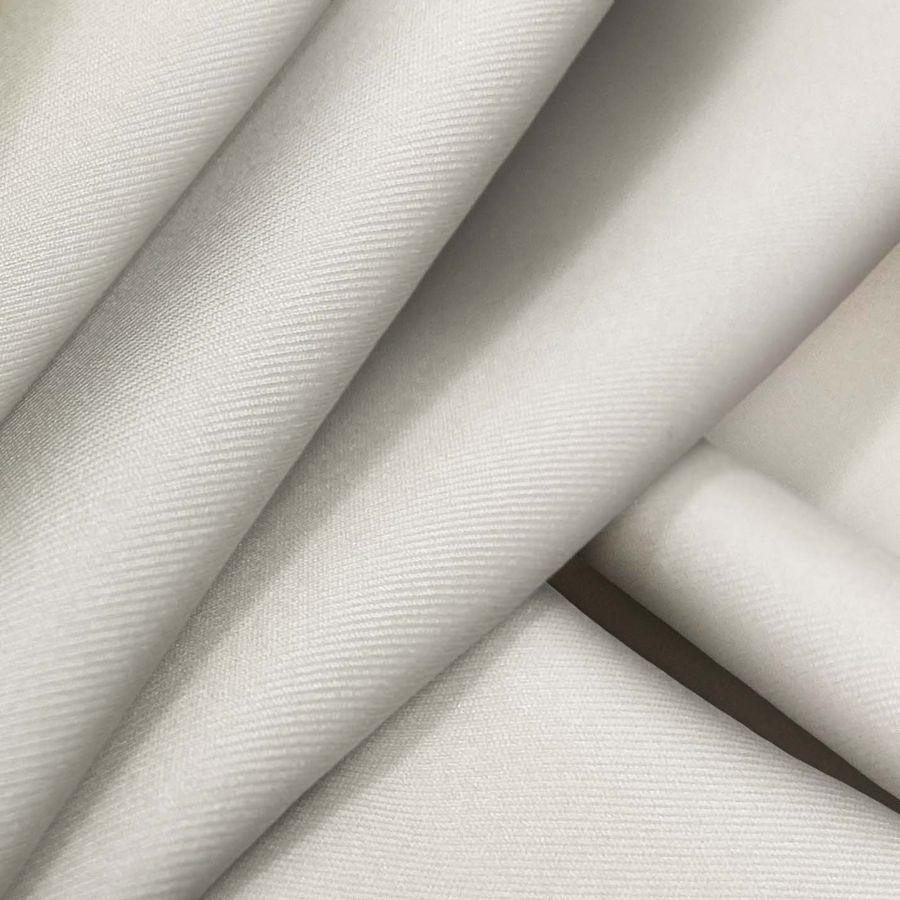 La tela base es Lycra Reciclada - Recycled de 190 gr/m2, compuesta por un 85% de poliéster y un 15% de elastano. El color liso impreso es un blanco antiguo (OldLace) con una composición de tinta CMYK de 1 cian, 4 magenta, 12 amarillo y 0 negro. Este color tiene un aspecto suave y delicado, con una sutil calidez en su tonalidad. Combina bien con otros colores pasteles y tonos apagados, como rosas suaves y gris muy claro.