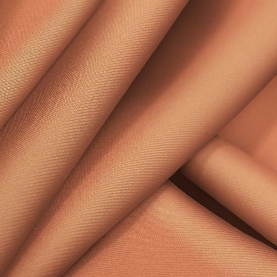 La tela base es la Lycra Reciclada - Recycled de 190 gr/m2 en un color liso impreso de Naranja Cinabrio. El color se compone de un 8% de tinta cian, un 61% de tinta magenta, un 65% de tinta amarilla y un 1% de tinta negra, dando como resultado una tonalidad intensa y vibrante. El cinabrio es conocido por ser uno de los colores más antiguos y valiosos de la historia, simbolizando la vida y la vitalidad en diversas culturas. Este color combina perfectamente con tonos cálidos como el naranja, el amarillo y el oro y también contrasta bien con tonos fríos como el verde y el azul.