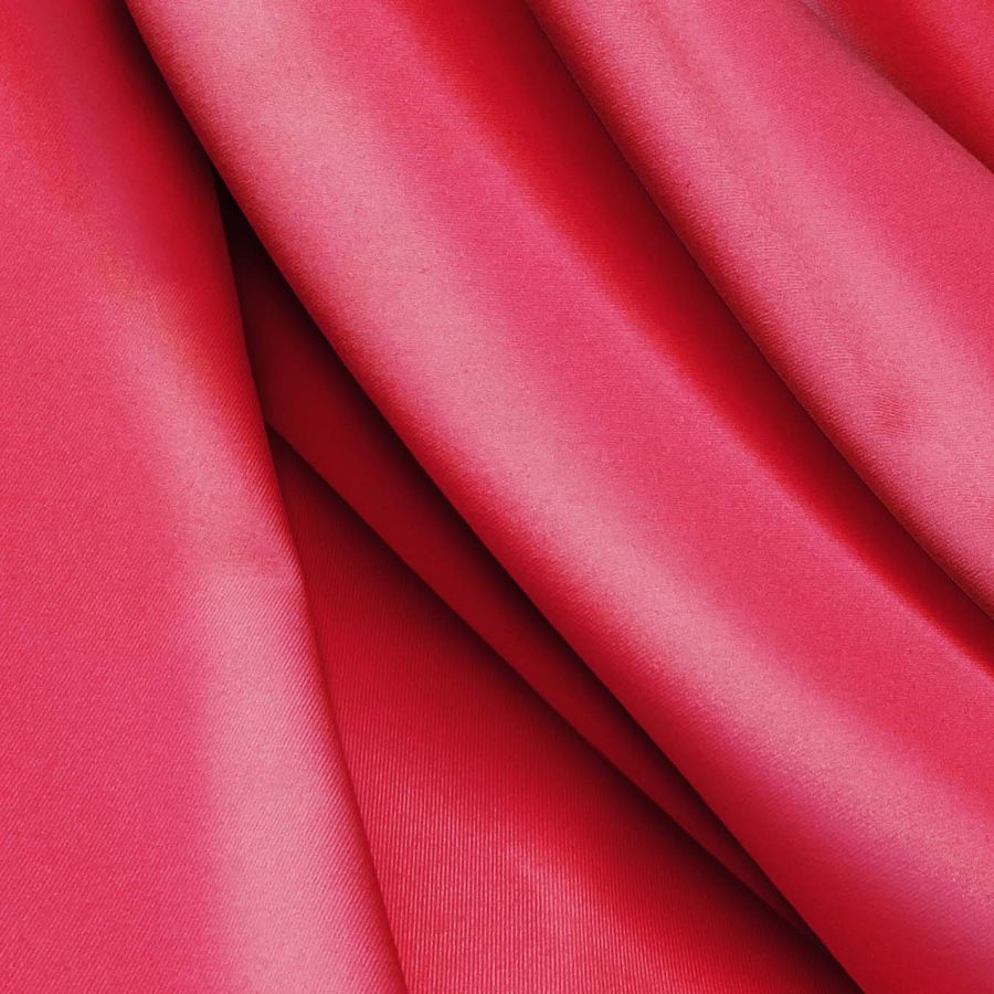 La tela base es Lycra Reciclada - Recycled de 190 gr/m2, una tela elástica y suave compuesta por 85% poliéster y 15% elastano. El color liso impreso es Rojo Amaranto, y su contenido en tinta es de Cyan 5, Magenta 96, Yellow 73 y Black 1 (CMYK: 5 96 73 1). Este color secundario se caracteriza por ser intenso y vibrante, con una tendencia clara hacia el rojo y sutiles pinceladas moradas. Se combina especialmente bien con tonalidades oscuras como negro y gris, así como con colores más claros y brillantes como el rosa.