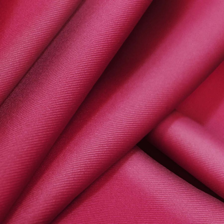 La Lycra Reciclada - Recycled de 190 gr/m2 es una tela de Lycra con un gramaje de 190 gr/m2 compuesta por un 85% de poliéster y un 15% de elastano. Su ancho es de 150 cm y está certificada como sostenible por GRS, al ser un tejido reciclado. El color liso impreso es una combinación de rojo y granate con un CMYK de 23, 98, 52 y 17 respectivamente. La tinta es sublimada sobre el poliéster de la tela base para lograr la impresión.