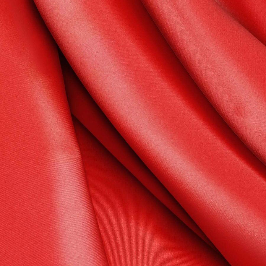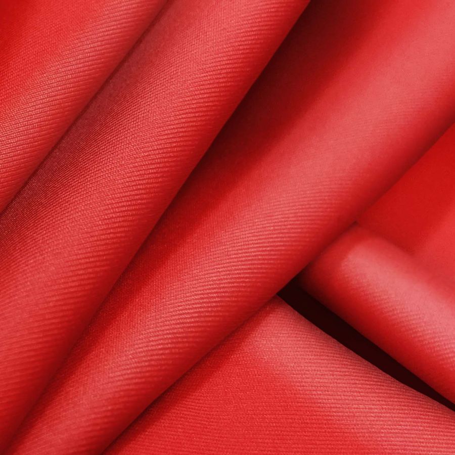 La tela base es Lycra Reciclada - Recycled de 190 gr/m2, compuesta por 85% poliéster y 15% elastano, con un ancho de 150 cm y certificada por GRS. El color liso impreso es de tonalidad roja con el nombre Lujuria, obtenido con la impresión digital textil mediante 0% de tinta cyan, 95% de tinta magenta, 90% de tinta yellow y 0% de tinta black, lo que se traduce en un valor CMYK de 0 95 90 0. Este tono rojo representa la pasión, la fuerza y el deseo.