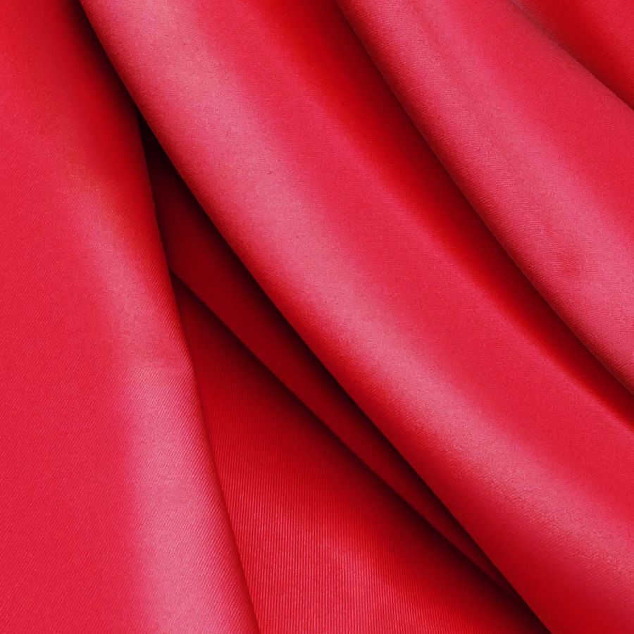 La tela base es Lycra Reciclada - Recycled de 190 gr/m2, compuesta por un 85% de poliéster y un 15% de elastano, con un ancho de 150 cm. El color liso impreso es Rojo,Manzana Caramelo, con un CMYK de 2, 100, 81, 0, siendo un rojo intenso con tonalidades amarillas y verdosas. Combina bien con tonos neutros como grises y blancos, y también con verdes oscuros y naranjas.