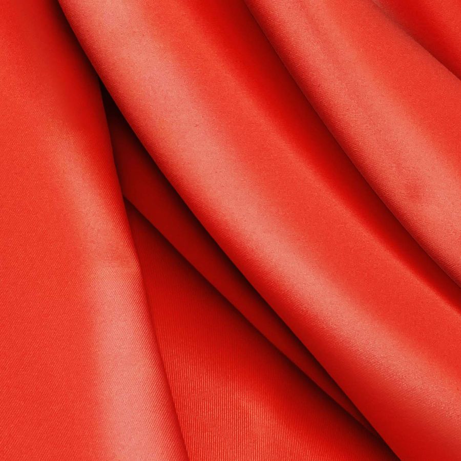 La tela base es la Lycra Reciclada - Recycled de 190 gr/m2 de composición 85% POLIÉSTER y 15% ELASTANO, con un gramaje de 190 gr/m2 y un ancho de 150cm. El color liso impreso es un rojo intenso, cuyas tonalidades se obtienen a partir de una combinación de tinta magenta y amarilla en el CMYK. Este tono secundario combina perfectamente con colores neutros como el blanco y el negro, así como también con tonos anaranjados y rosados para crear un contraste vibrante.