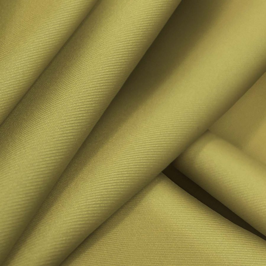 La tela base es la Lycra Reciclada - Recycled de 190 gr/m2, de composición 85% poliéster y 15% elastano, con un gramaje de 190 gr/m2 y un ancho de 150 cm. El color liso impreso es verde latón, con un CMYK de 34 31 76 14. Este color, simbólicamente, transmite optimismo y energía, y técnicamente, posee una gama cromática cálida y vibrante. Combina especialmente con tonos terrosos, amarillos y naranjas.