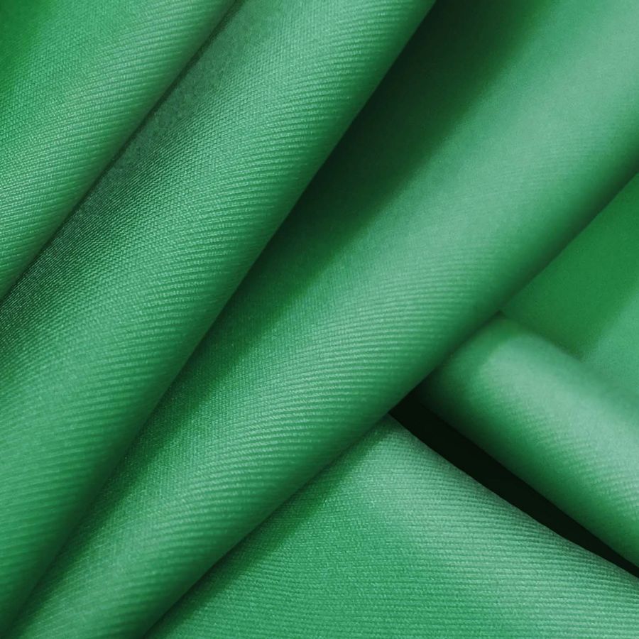 La Lycra Reciclada - Recycled es una tela elástica y suave, con una composición del 85% de poliéster y 15% de elastano, con un gramaje de 190 gr/m2 y un ancho de 150 cm. Esta tela tiene una certificación GRS y es sostenible, ya que es reciclada. El color liso impreso es un verde mar opaco, cuyo CMYK es 80 22 78 6, logrado con tinta cian, magenta, amarilla y negro. Este color impreso es ideal para crear prendas de baño y bikinis. La tela base y su color tienen textura suave, elástica y son resistentes al cloro y con UPF con protección UV muy alta 50+.