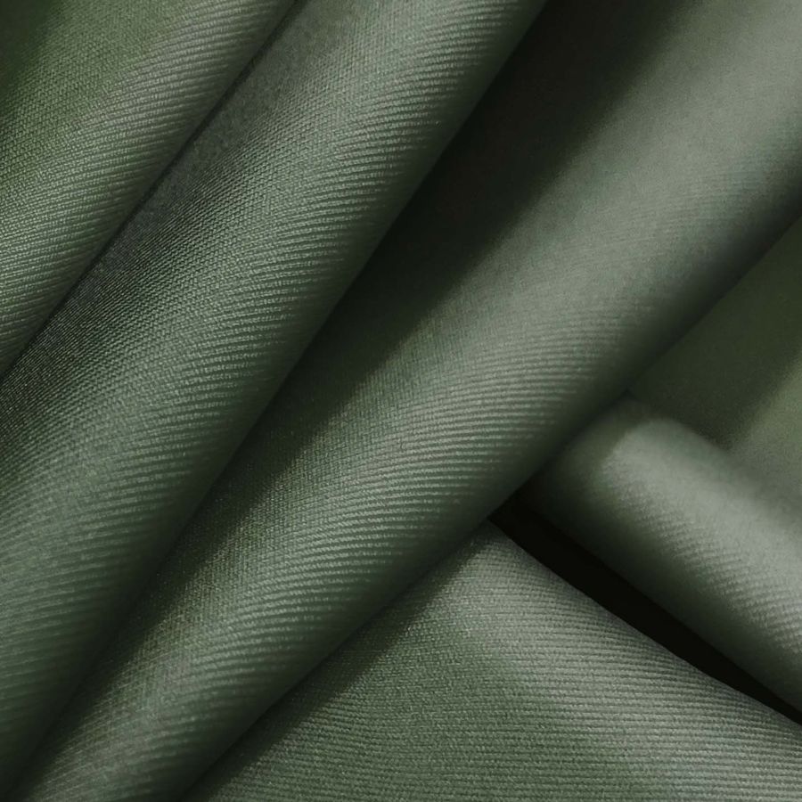 La tela base es Lycra Reciclada - Recycled de 190 gr/m2, compuesta por 85% poliéster y 15% elastano. El color liso impreso es Verde Tortuga, con un CMYK de 68 47 70 49. Este color se asemeja a un tono verde oscuro con una pizca de tonos azulados. Es un color elegante y sofisticado, que combina muy bien con tonos tierra, beige y marrones.