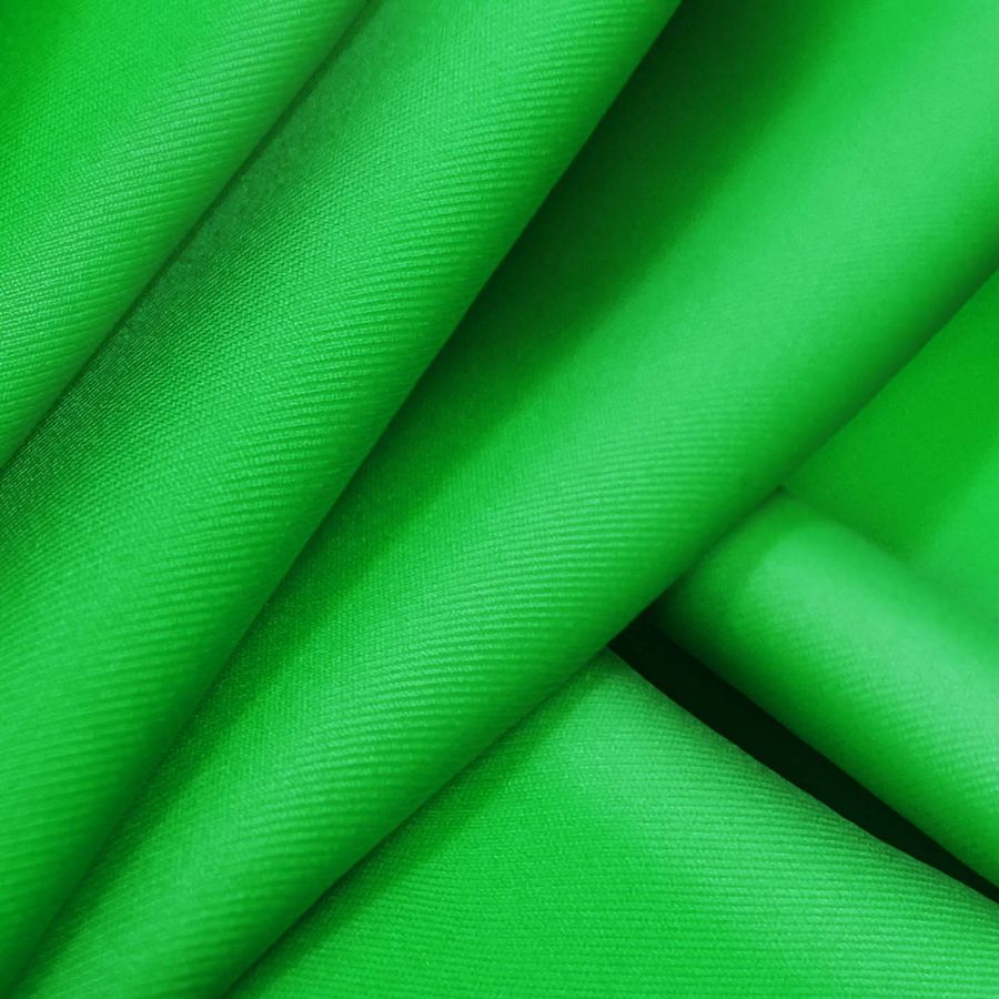 La tela base es Lycra reciclada - Recycled de 190gr/m2, de una suavidad y elasticidad increíbles. El color liso impreso es un verde brillante con un contenido de Cyan del 75%, Yellow del 100% y Magenta del 0%, el CMYK siendo de 75 0 100 0 y con una sola cara impresa mediante impresión digital textil. Este color es simbólicamente asociado con la naturaleza y la vida, aportando frescura y vitalidad a cualquier prenda. Combinado con tonos más oscuros de verdes, azules y grises, se puede crear una combinación armoniosa y fresca.