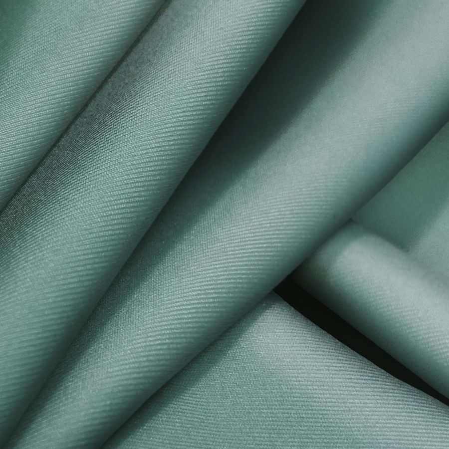 La tela base de este tejido es Lycra Reciclada - Recycled de 190 gr/m2, compuesta en un 85% de poliéster y un 15% de elastano. Su color liso impreso es un verde ceniza con un CMYK de 64 34 46 18. El color secundario es un tono oscuro de verde, que simboliza la estabilidad y la serenidad, y se combina especialmente bien con tonos marrones y grises. Este tejido está impreso con el color liso a una sola cara por impresión digital textil, lo que lo hace altamente resistente y duradero.