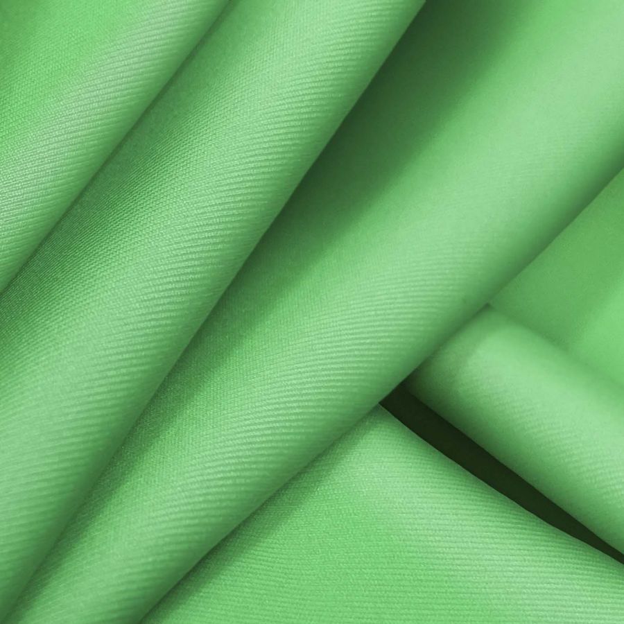 La tela base, Lycra Reciclada - Recycled de 190 gr/m2, es un tejido de lycra que combina un 85% de poliéster y un 15% de elastano con un gramaje de 190 gr/m2 y un ancho de tela de 150 cm. El color liso impreso es de un tono verde cloro obtenido mediante la técnica de sublimación, que utiliza los siguientes colores de tinta: Cyan 55, Magenta 0, Yellow 68 y Black 0, representados por el código CMYK 55 0 68 0. Este color transmite frescura y energía, y se combina maravillosamente con colores como el rosa, el azul y el amarillo.