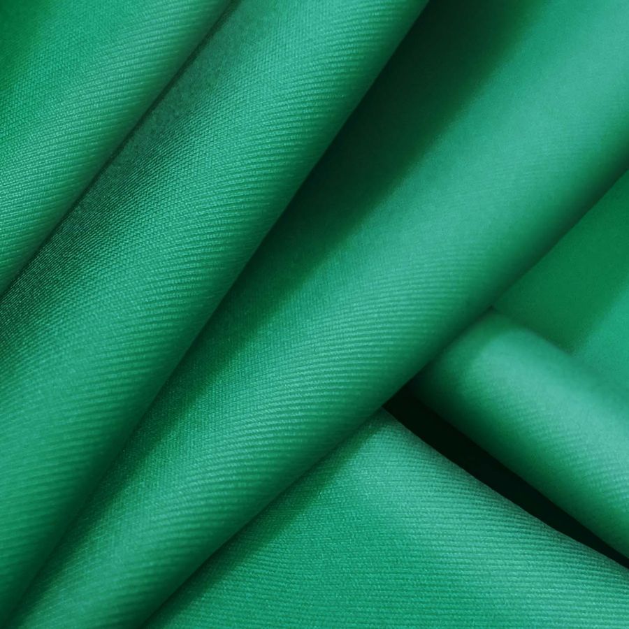 La tela base es Lycra Reciclada - Recycled de 190 gr/m2, compuesta por 85% poliéster y 15% elastano, con un gramaje de 190 gr/m2 y ancho de 150 cm. El color liso impreso es verde cobalto, con un CMYK de 85 23 74 7. Este color se describe como un verde con toque azul eléctrico, que se combina bien con el blanco, negro, gris y amarillo. La tela está impresa con el color liso a una sola cara por impresión digital textil. Las características generales de la tela incluyen su suavidad y elasticidad, así como la resistencia al cloro y un factor de protección UV muy alto de 50+. Además, el color impreso es resistente a la decoloración. Las aplicaciones de la tela base incluyen la moda baño, scrunchies, coleteros y otros productos deportivos. Los cuidados a tener en cuenta son lavado a temperaturas máximas de 40°C, no se puede blanquear ni lavar en seco, el planchado debe ser a baja temperatura y no se debe secar en secadora. La tecnología de impresión utilizada es la sublimación, que implica la transferencia de tinta a la tela mediante calor y presión en una impresora de tintas especiales.