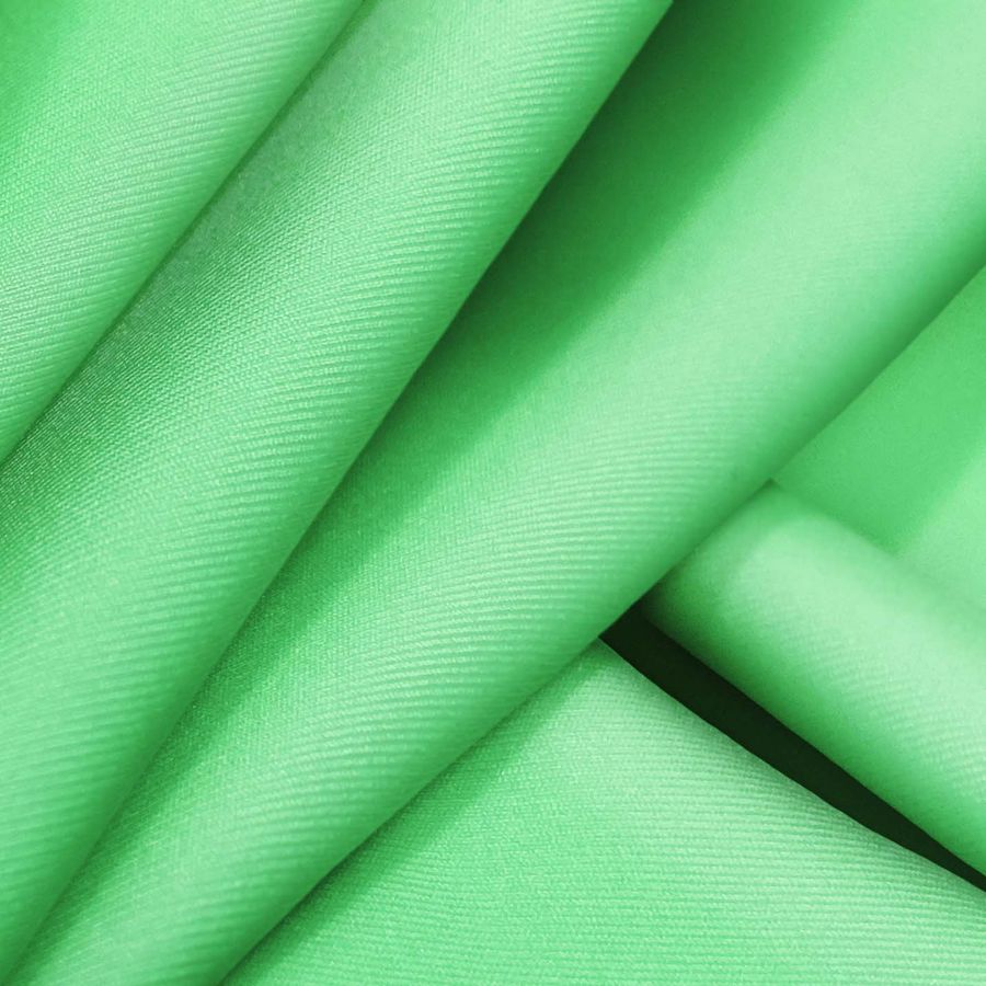 La tela base es Lycra Reciclada - Recycled de 190 gr/m2, compuesta por 85% poliéster y 15% elastano. La tela tiene una textura suave y elástica, con un acabado resistente al cloro y con UPF Protección UV muy alta de 50+. En cuanto al color, es verde heliógeno con un CMYK de 52 0 67 0, lo que lo convierte en un tono intenso y vibrante que combina bien con otros colores de tonalidades cálidas como el naranja y amarillo, así como con tonos neutros como el blanco y el gris.