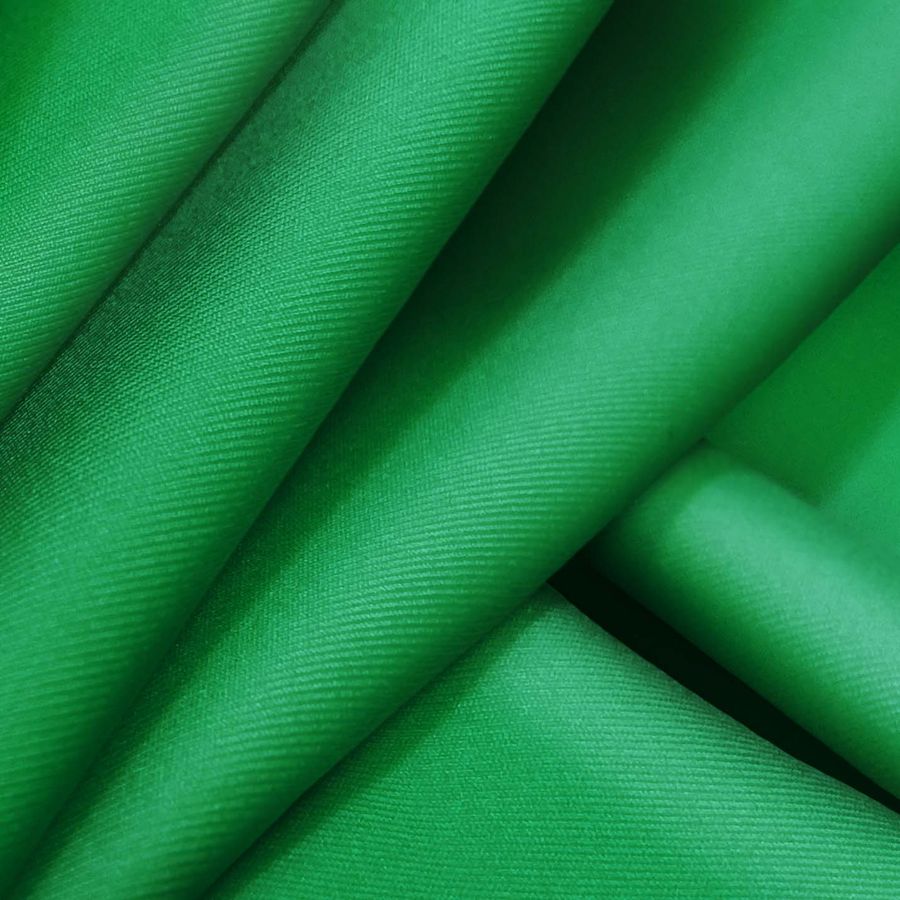 La tela base es la Lycra Reciclada - Recycled de 190 gr/m2, compuesta por 85% POLIÉSTER y 15% ELASTANO, con una textura suave y elástica. El color liso impreso es un verde hoja, con un CMYK de 85 19 94 5, combinando armónicamente con colores como el blanco y el negro, o colores cálidos como el amarillo y el naranja. Cabe destacar que la tela base está impresa con este color liso a una sola cara por impresión digital textil.